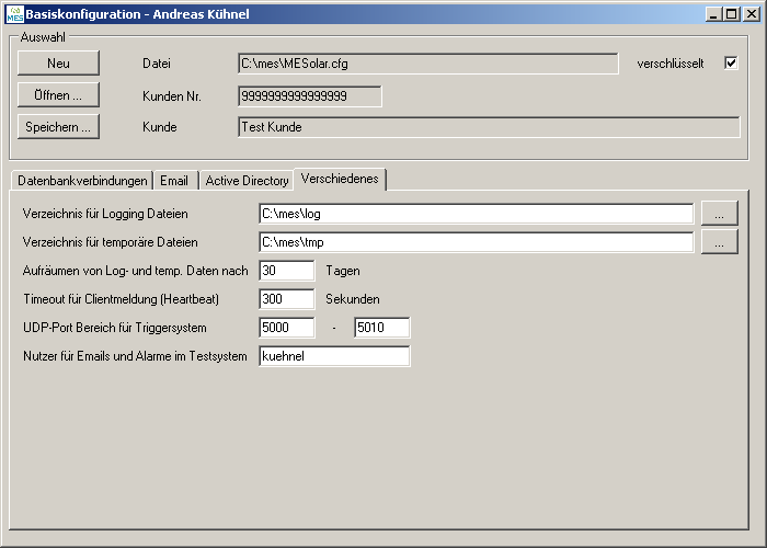 Die Basiskonfiguration wird jedem Client als Datei zur Verfügung gestellt (siehe Architektur) und wird im Normalfall verschlüsselt abgelegt.