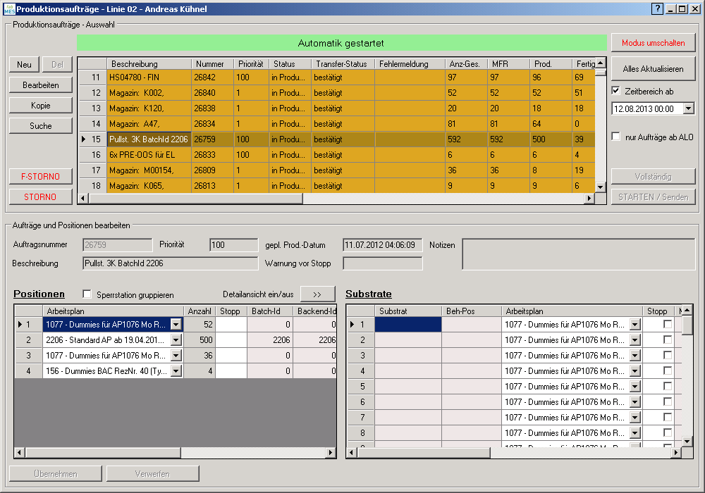 - Auftragsübernahme von ERP-System oder manuelle Erfassung im MES.